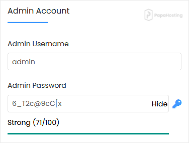 • Admin Username: Your new Pimcore username (for security reasons, do not use the administrator or the admin username).