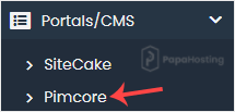 4. On the left side, locate the Portal/CMS category. Click on it and then on the Pimcore link that appears.