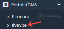 4. On the left side, locate the Portal/CMS category. Click on it and then on the liveSite link that appears.